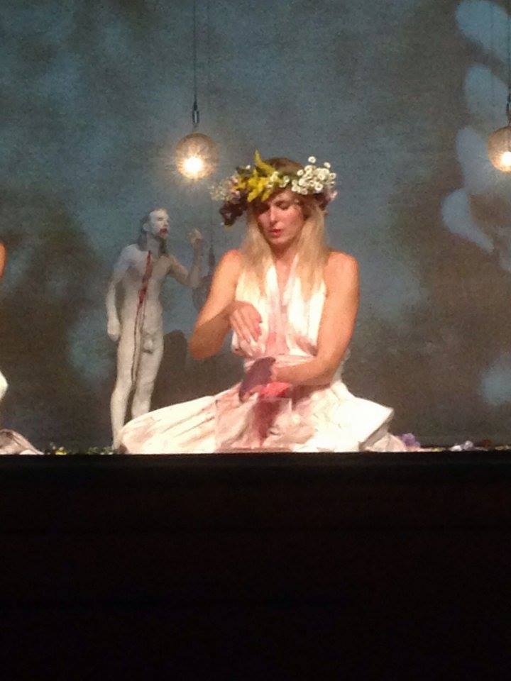 La materia primaria di sperma e sangue, sesso e violenza, sono sul palco perché sono intorno a noi. la carne vera così come l’oscenità della carne del corpo nudo, del sesso esibito ci interrogano sui nostri reali desideri e paure, ce li presenta davanti, ci richiama alla potenza necessaria per generare la vita.