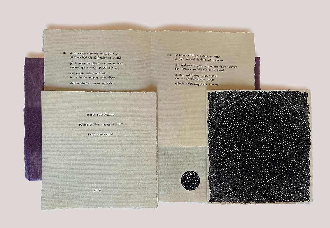 Venticinque libri unici creati da Giulia Napoleone con la meticolosa perizia di un antico amanuense in cui i testi poetici di alcuni fra i più importanti interpreti della poesia contemporanea  – tra cui Adonis, Milo De Angelis, Fabio Pusterla, Luigia Sorrentino, Antonella Anedda, Giancarlo Pontiggia – trascritti a mano dall’artista sono accompagnati e messi in dialogo con disegni e pastelli realizzati dalla stessa.